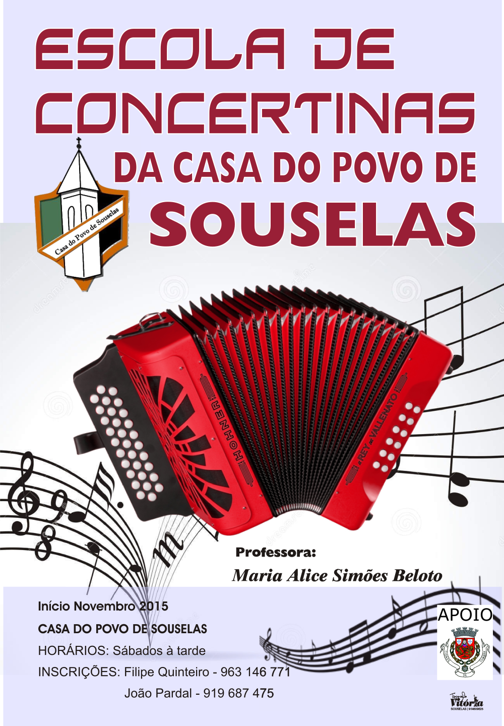 O projecto formativo da Casa do Povo de Souselas volta a ganhar ímpeto. A nova Escola de Concertinas está a aceitar alunos, com as aulas a funcionar ao sábado à tarde. Para mais informações: cpsouselas@gmail.com ou 963 146 771 / 919 687 475.